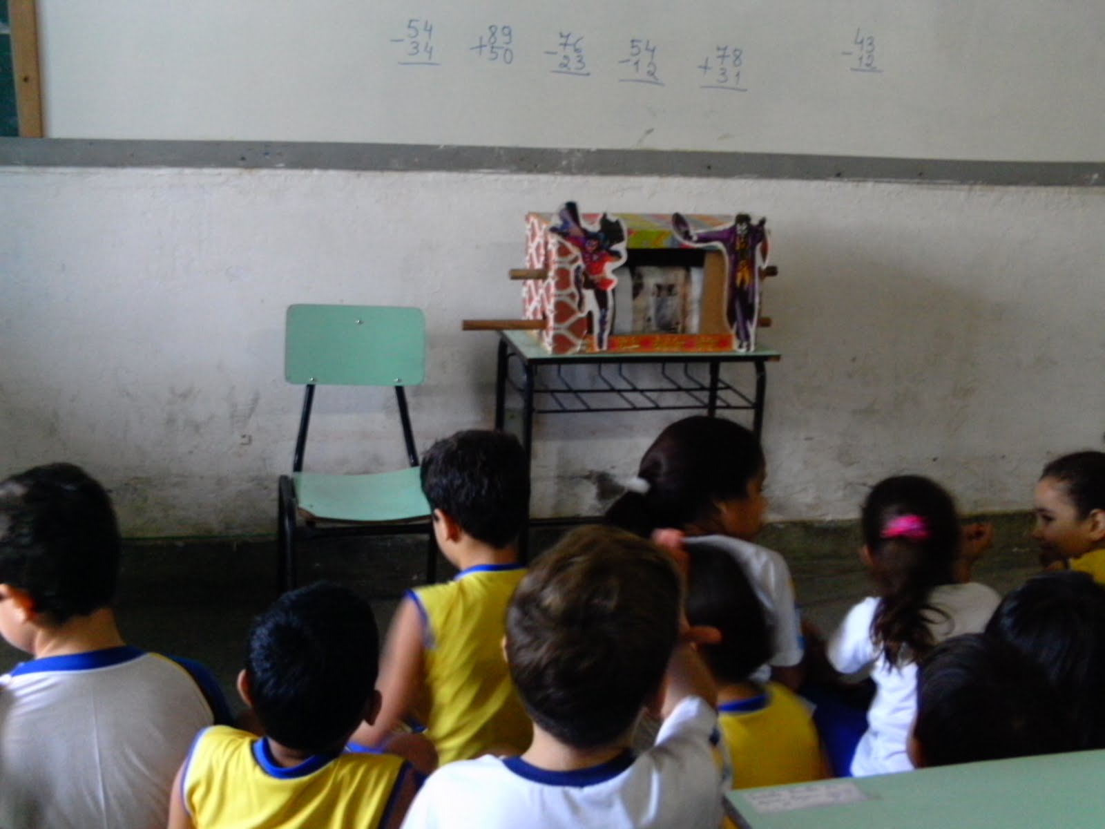 Como fazer : Cortar a caixa o espaço para ser a tela da televisão e fazer furos ,em cima e em baixo como mostra a foto , para colocar os cabos de vassoura . Escolher o tema a ser trabalhado , lembrar que no final da história colocar o nome fim , para mostrar que terminou o filme. As pontas do filme devem ser reforçadas com a fita gomada presa no cabo de vassoura. O filme vai sendo enrolado á medida que a história vai sendo contada .
